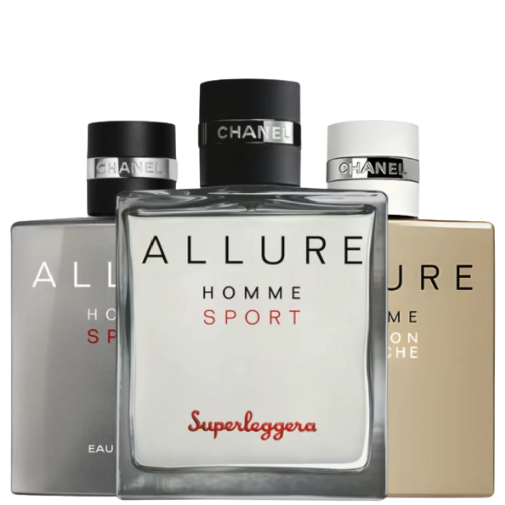 Um trio sofisticado que representa o melhor da elegância esportiva masculina. Esse kit reúne três interpretações marcantes da linha Allure Homme, da icônica maison francesa Chanel.