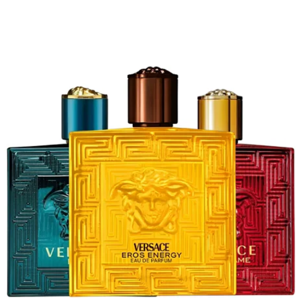 Esse trio traz três interpretações diferentes da família Eros, cada uma com sua personalidade única, mas todas com assinatura poderosa e presença marcante — ideal para quem ama perfumes que combinam estilo, confiança e impacto.